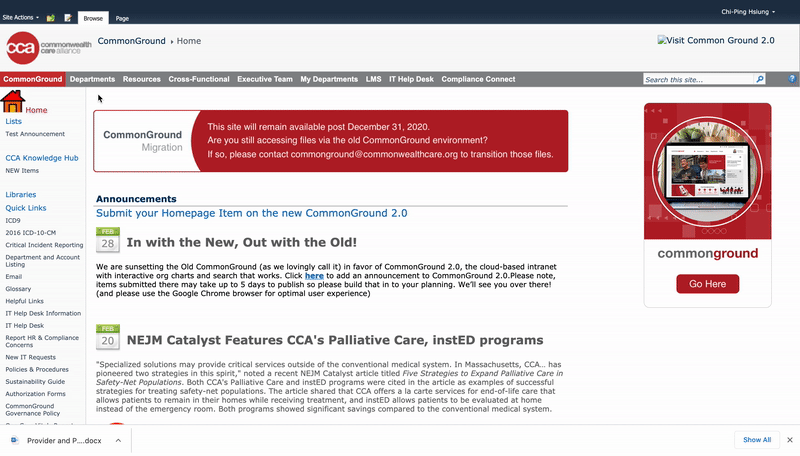 Commonwealth Care Alliance has experienced an exponential growth in the years since the legacy intranet was first developed. From 2016 to present, the company has doubled in size and consequently, has outgrown the functionality that it once provided.